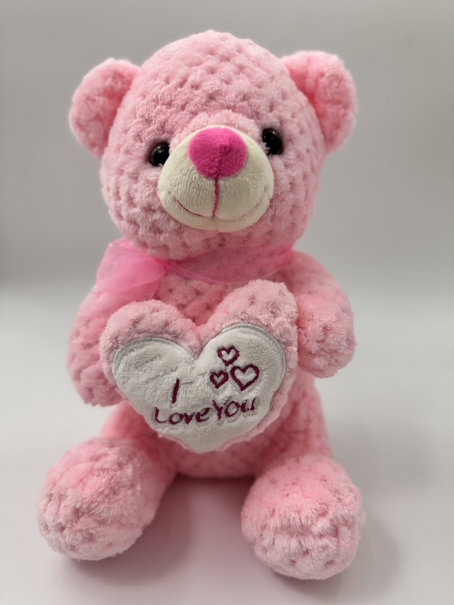 دبدوب وردي صغير يحمل عبارة “I love you”.